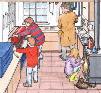 Chris is driving the engine on the little farm railway which features in the Peter’s Railway books.